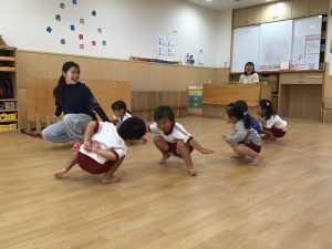 年少すみれ組も大きく崩れる子も少なく、落ち着いた保育ができていました。本日昼に行われる内科健診のお話(練習)も聞け、準備万端⁉︎