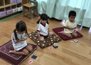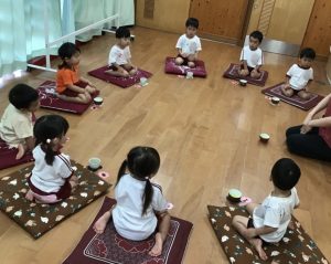 座布団の上に正座をして、お茶とお茶菓子を味わいました🍵
