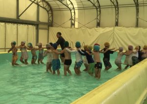 プールバージョンのじゃんけん列車で、じゃんけんの後に水をかけあって楽しんでいました!💦