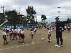 ラグビーボールに触れたり、皆で協力することの楽しさをゲームを通して感じることができ、大盛り上がりの子どもたちでした!