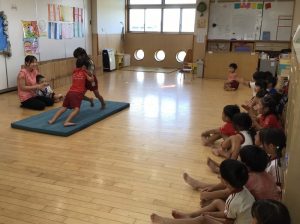 れんげ2組クックとロロはマットの上でお相撲をしたり、コロコロ転がったり、マット遊びを楽しみました!