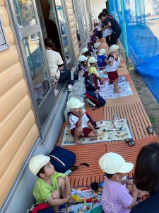 今日は天気が良いので、どのクラスも外やテラスでお弁当を楽しんでいます☀️