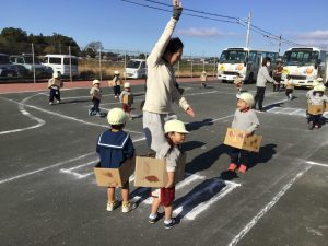 あさがおさんは以前作った”秋の車”に乗って、園内駐車場を走りました🚗💨
