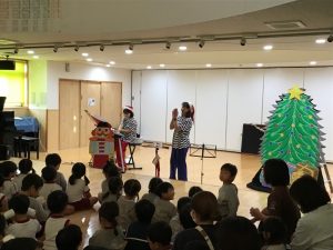 ハモミミさんの演奏を聞いたり、カスタネットや紙コップを使って一緒に演奏したりと音楽を楽しみました☺️
