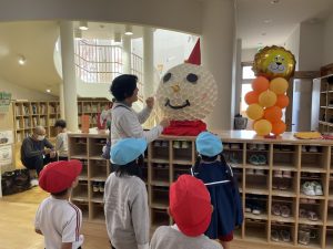 これは先日のハモミミさんの演奏会で使用した紙コップを再利用して、職員が大きな雪だるまを作ったものです!見てくれましたか?⛄️❄️