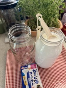 私の朝のルーティンは、ヨーグルト1瓶を冷蔵庫から出し、大さじ6を空の瓶へ入れ、牛乳をいっぱいまで入れたら混ぜて放置!残りのヨーグルトは家族で分けて完食!