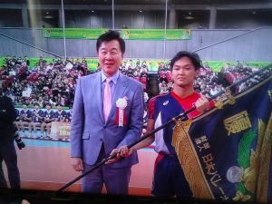 昨年の県予選の際のブログ春高バレー出場まで後1勝にもあるように卒園の時のはかせ号は「わんぱく大将はかせ」でした。ネット検索ではこのはかせ号のことが小学校時代と誤った記事になっているようですが、煌生くんがバレーを始めたのは中学生の時で小学校時代はタグラグビーで磐田市内のチームで活躍されていましたタグラグビー全国大会へ