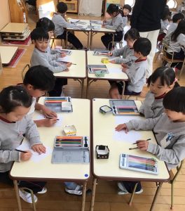 ひまわりさんはチームの名前決めと、新しい当番表に似顔絵を描きました!