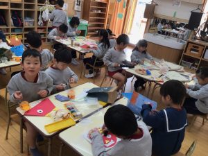 ひまわりさんは廃材を使って鬼のお面作り!