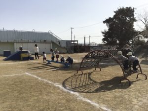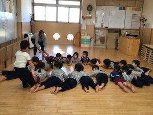 れんげ1組さんは大根抜きゲーム、れんげ2組さんはホールで沈没ゲームをして盛り上がりました!