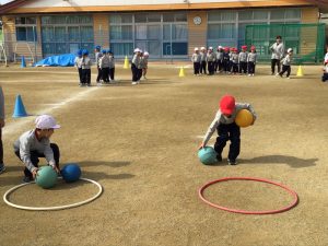 れんげさんはボール運びリレーをして盛り上がりました!