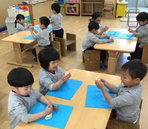好きな色の食紅を混ぜて、こねこねして楽しみました!