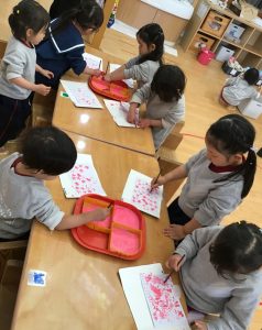 あさがお秋組さんはひまわりさんのために、絵の具を使って桜を咲かせました🌸