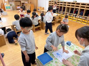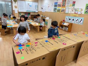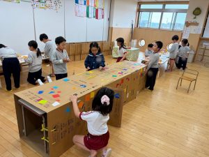 すみれ2組さんの後は、れんげ1組さんがトンネルの飾り付けの続きをしてくれました!
