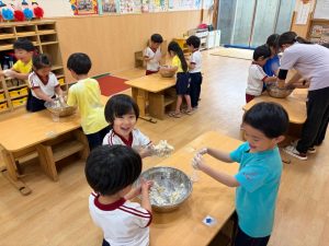 すみれさんは小麦粉粘土をしたり、たんぽぽさんのためにダンボールのトンネルを折り紙で飾り付けました✨