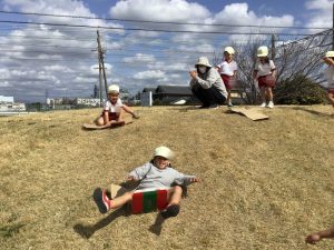 れんげさんは外遊びをしたり、新聞を使ったゲームをして楽しみました!