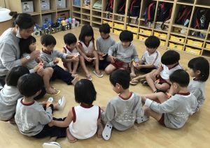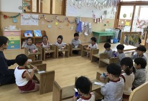 フルーチェを食べたり、制作したアイスをあんたがたどこさの歌に合わせて回して交換したり、とても嬉しそうでした!