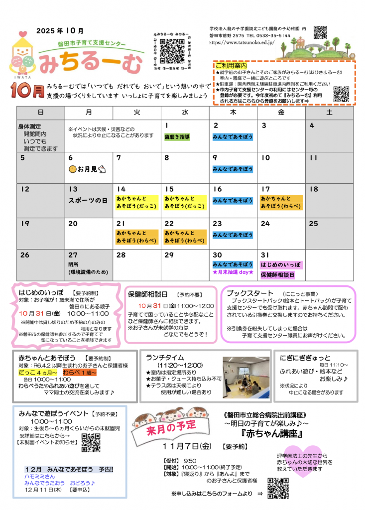 はじめのいっぽ…(予約制)お子様が1歳未満で初めて「みちるーむ」を 利用する方向け